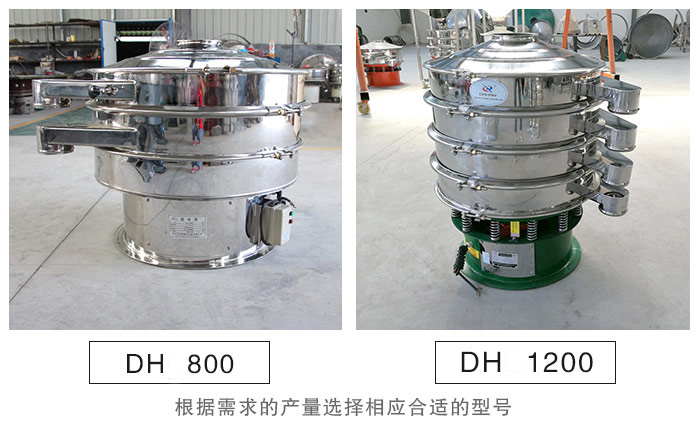 不銹鋼振動篩型號有DH600、DH800、DH1000、DH1200、DH1500、DH1800 、DH2000等。滿足客戶不同的篩分產(chǎn)量需求,客戶可根據(jù)需求的產(chǎn)量選擇相應合適的型號。