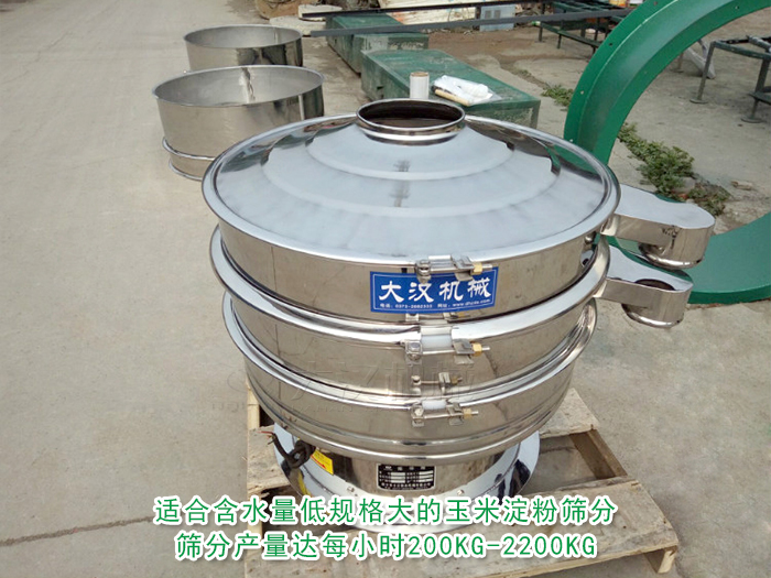 不銹鋼振動篩可篩分200目以內(nèi)的玉米淀粉,整機采用全封閉結(jié)構(gòu)精選304不銹鋼材質(zhì),與物料接觸部分無雜質(zhì)污染,密封件選用硅膠材質(zhì)符合食品衛(wèi)生標準,篩網(wǎng)層數(shù)可達5層。能篩分出六種規(guī)格不同的玉米淀粉,篩分精度70%左右,適合含水量低規(guī)格大的玉米淀粉篩分。篩分產(chǎn)量達每小時200KG-2200KG