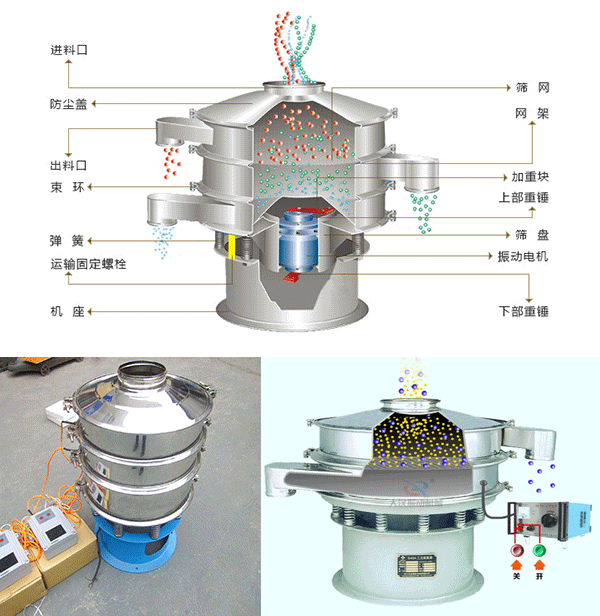 超聲波不銹鋼振動篩型號有:DHC-400、DHC-600、DHC-800、DHC-1000、DHC-1200、DHC-1500、DHC-1800、DHC-2000等標準直徑型號