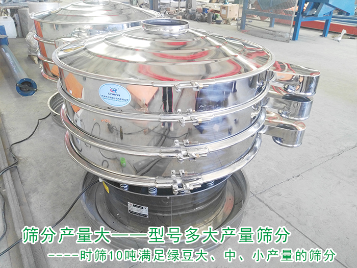 不銹鋼振動篩型號規(guī)格有八種(可根據(jù)特殊需求定制型號)滿足了客戶對于不同產(chǎn)量的要求,可根據(jù)產(chǎn)量高低選擇不同大小型號的設備,可滿足時篩綠豆10噸左右!