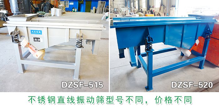 葡萄干不銹鋼直線振動篩型號有:DZSF-515、DZSF-520、DZSF-530、DZSF-1020、DZSF-1030、DZSF-1540等不同型號,根據(jù)不同葡萄干的篩分規(guī)格產(chǎn)量需求,還有篩分設(shè)備材質(zhì)結(jié)構(gòu)、生產(chǎn)場地等條件選擇不同的型號,還可根據(jù)特性需求加長加寬定制,不同的型號之間價格相差在2500元以上。