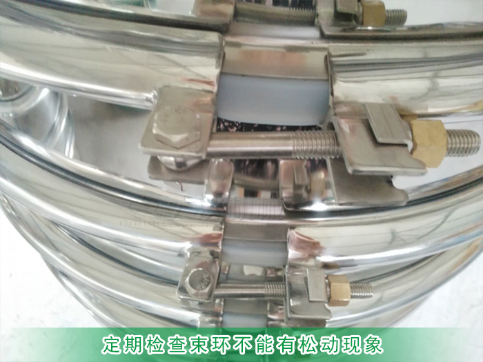 不銹鋼振動篩在換網(wǎng)、清洗、保養(yǎng)等過程中可能會造成篩框之間的束環(huán)松動,導致篩分過程中篩體晃動劇烈,從而造成出料口振動斷裂。需要定期檢查束環(huán)不能有松動現(xiàn)象。