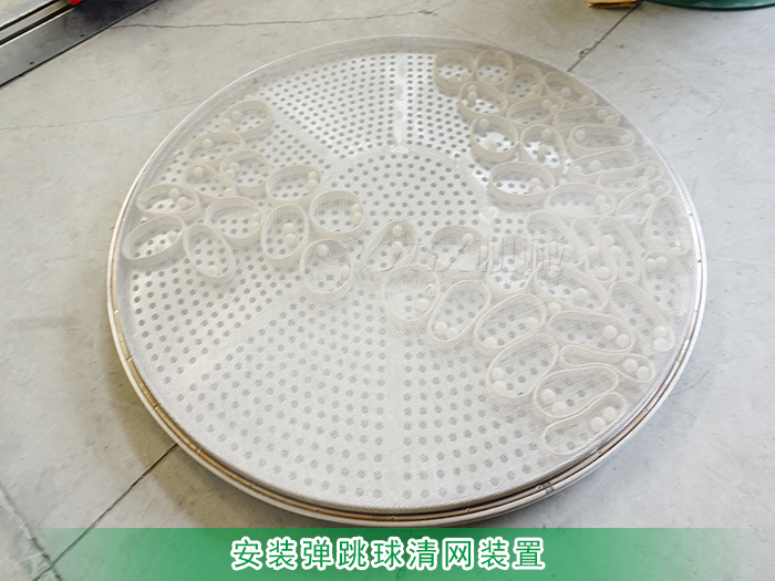 可在不銹鋼振動篩篩框與篩網(wǎng)之間安裝自動清網(wǎng)裝置,它是通過其中的彈跳球經(jīng)過不斷的進(jìn)行上下往復(fù)跳動撞擊篩網(wǎng),使粘、卡在篩孔之間的水泥被撞擊彈起、落下實現(xiàn)有效清網(wǎng)的作用??梢越档秃Y面堵孔的機率提高篩分物料的透篩率,提升篩分產(chǎn)量。