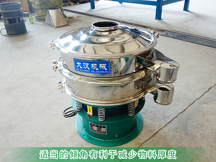不銹鋼振動篩在設(shè)計傾角時通常情況下為45°,在實際使用過程中如果物料中雜質(zhì)少只需粗篩一下就行的時候可以適當(dāng)調(diào)節(jié)進(jìn)料口下部的振動彈簧高度,使進(jìn)料口高度升高可以加快物料在篩面的運動從而加快過網(wǎng)。適當(dāng)?shù)膬A角有利于減少物料厚度,實現(xiàn)薄料層篩分,提高篩分產(chǎn)量。
