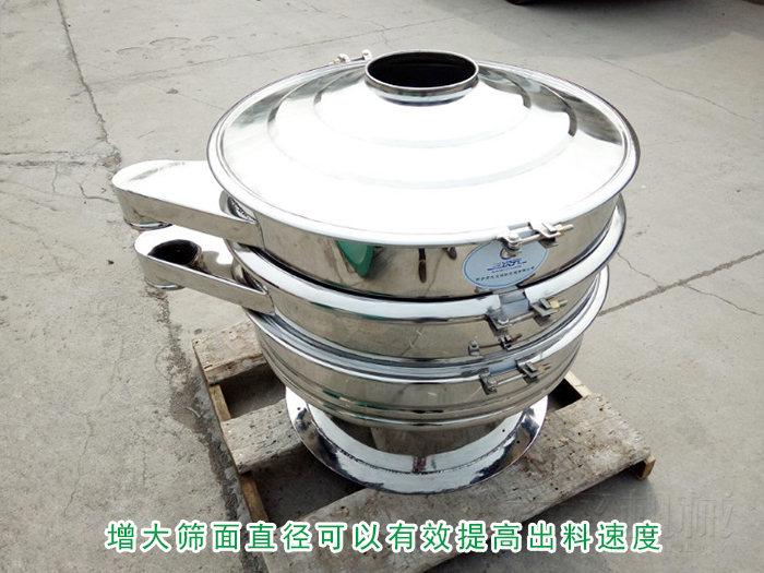 不銹鋼振動(dòng)篩一般采用金屬編織網(wǎng)或沖孔板篩網(wǎng),如果想要提高出料速度可以增大篩面直徑更換比之前更大直徑的篩網(wǎng)進(jìn)行篩分,整加整個(gè)篩面的開(kāi)孔率,可以有效提高出料速度。