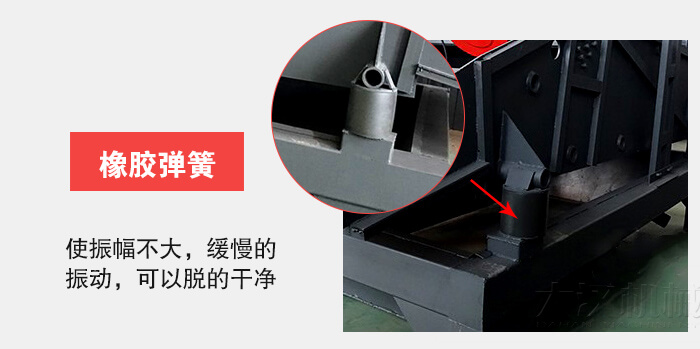 4,振動電機固定采用高強度螺栓,底部彈簧為橡膠彈簧,彈簧的質(zhì)量會用影響振動電機的壽命。篩板固定的密度高,篩板中打有加強筋。