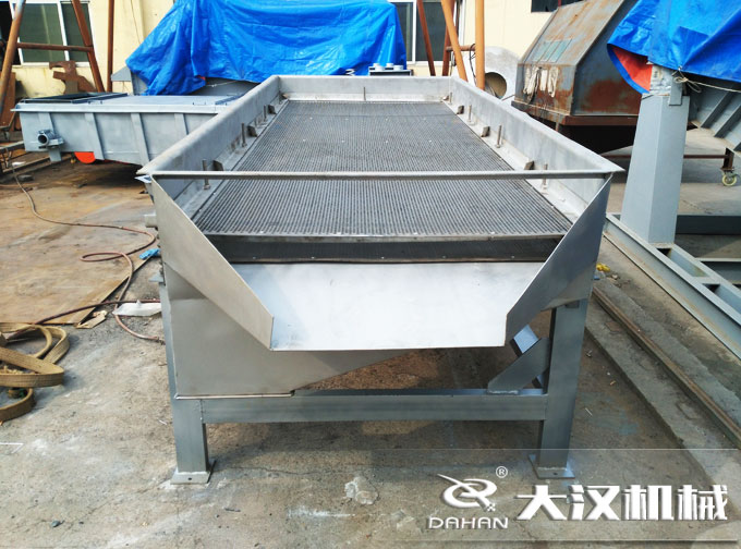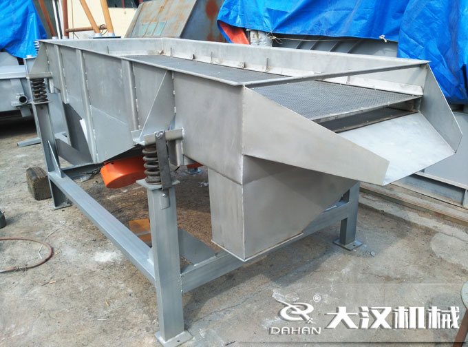 DZSF系列直線振動篩(長方形振動篩)為雙振動電機(jī)驅(qū)動。當(dāng)兩臺振動電機(jī)做同步、反向旋轉(zhuǎn)時,其偏心塊所產(chǎn)生的激振力在平行于電機(jī)軸線的方向相互抵消,在垂直于電機(jī)軸的方向疊為一合力,因此篩機(jī)的運(yùn)動軌跡為一直線。兩電機(jī)軸相對篩面在垂直方向有一傾角,在激振力和物料自重力的合力作用下,物料在篩面上被拋起跳躍或向前作直線運(yùn)動,從而達(dá)到對物料進(jìn)行篩選和分級的目的。適用于粒度在0.074―5mm,含水量小于7%,無粘性的各種干式粉狀或顆粒狀物料的篩分。大給料粒度不大于10mm