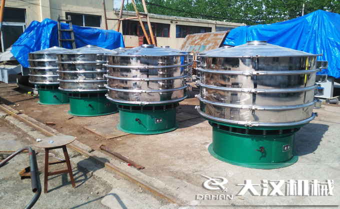 3、關(guān)于“大漢牌振動篩”:"大漢"DH系列振動篩產(chǎn)品,經(jīng)客戶多年使用,獲得大量的一線反饋建議,在自有成熟的篩機制造技術(shù)基礎(chǔ)上,大漢機械工程師以滿足客戶需求為標準,多次技術(shù)改進,篩分效果更加優(yōu)越,采用"通用"新型動力激振器,三維動力更加突出,適用范圍更加廣泛,大漢機械公司可根據(jù)客戶需求設(shè)計特殊型號,無論物料是干是濕,是精細是粗糙,是比重大是比重輕,0-400目都可以篩選,不管是液態(tài),還是漿狀的0-600目都可以過濾。"大漢"旋振篩系列產(chǎn)品同時配備專門的篩網(wǎng)清理裝置,把堵網(wǎng)率降到低,過網(wǎng)率和處理精度得以有效提高。"大漢"具備特殊型號制造的能力讓顧客對"大漢"有更多的選擇。